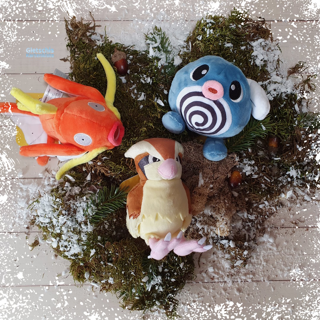 Unser neues Karpador hier hat sich an Land geplatscht und möchte es sich zusammen mit Taubsi und Quapsel ein wenig gemütlich machen. Aber sieh selbst: