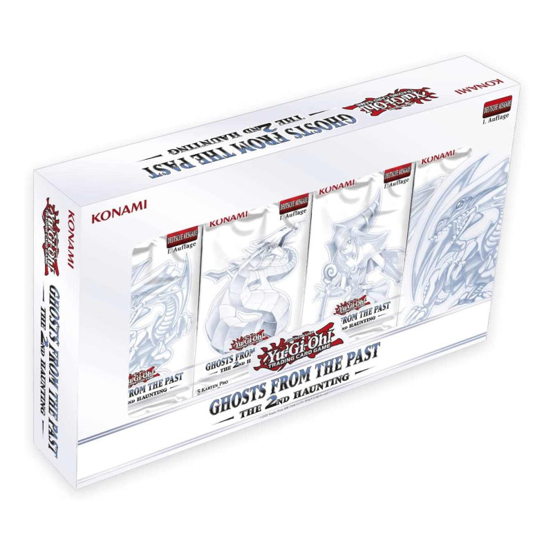 Schaurige holografische Ghost Rares! Die Sammelbox Ghosts From the Past: The 2nd Haunting bringt Geister der Vergangenheit zurück, um dich erneut heimzusuchen. Das Booster-Set voller Foilkarten enthält eine Mischung von spielstarken Turnierfavoriten und dutzende andere Karten, die zum ersten Mal als Foil erhältlich sind. Manche Boxen enthalten auch 1 von 9 neuen Ghost Rare Karten, darunter den Cyber Drache, Dunkles Magier-Mädchen und Blauäugiger w. Drache.
