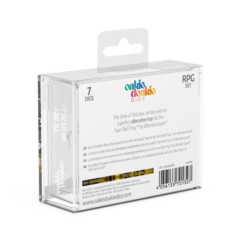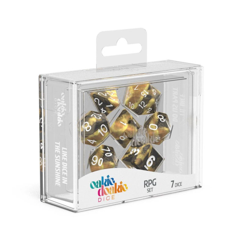 Dieses 7-teilige RPG Würfelset ist ideal geeignet für deine nächste Rollenspielrunde. Die hochwertigen Würfel, jeweils ein W4, W6, W8, W10, W12, W20 und W%, werden dir lange Freude bereiten und in einer stabilen Box mit einem ausziehbaren Fach geliefert. So kannst du sie immer einfach und schnell einpacken und mitnehmen.